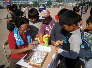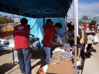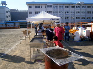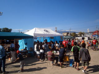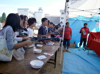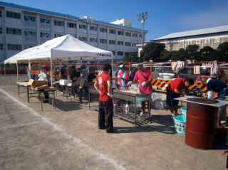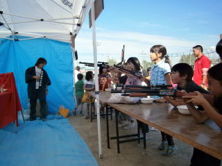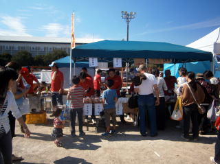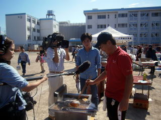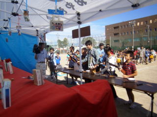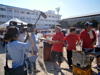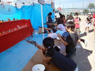 | 10月13日(土) 10月とは思えない暑い日ざしのなか五小バザーが開催されました。 この青い空が、昨年の3週連続バザー当日の雨という悪夢をすっかり忘れさせてくれました。(笑 今日は、メンバーがいつもより、緊張している様子・・・なぜって・・・なんとテレビ静岡さんの取材撮影が 入ったのでした。(●^o^●)v 準備も片付けもいつもより、てきぱきしているように見えました。((笑 この模様は、テレビ静岡 夕方6時の「スーパーニュース県内版」−静岡こども応援団−の中で、放映される予定 です。放映日が確定したら、掲示板でお知らせしますので、乞うご期待☆ さて、バザーでは、射的と揚げ物と物品販売の出店をしましたが、射的は、例年のごとく行列を回避するために、 整理券(297枚)を配りましたが、それでも、行列ができ、子どもたちの一番人気でした。最高4回も来てくれた子 がいましたよ。 すべて完売!!来場者の皆さんに感謝感謝です。お買い上げありがとうございました〜!! |
