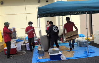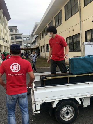当日の朝7に五小おやじ倉庫から荷物を運び出し、五中へ