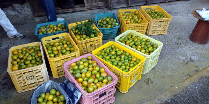 前日の朝から、おやじ村でみかん狩り