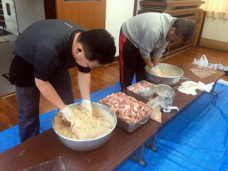 午後は50kgの鶏肉の仕込み