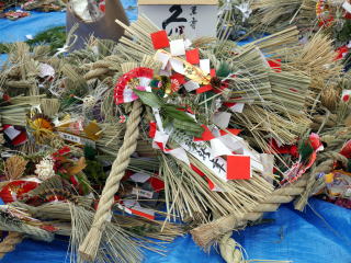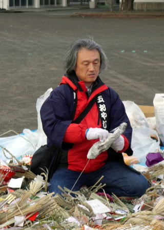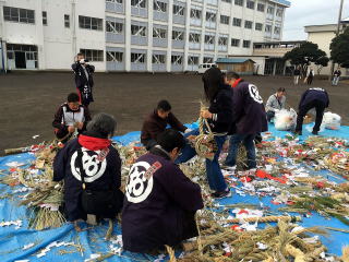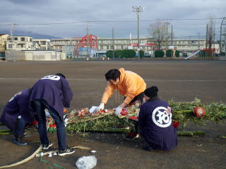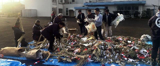 まずは、お飾り部隊 町内から集めたお飾りをきれいに整えます。