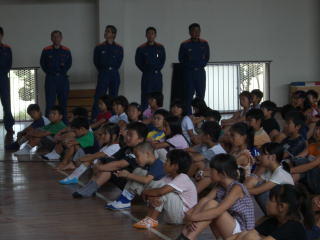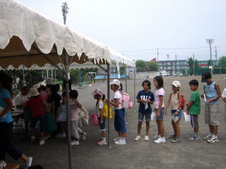 健康調査表を提出して、 おやじの会スタッフの紹介です。 北消防署のご協力をいただきました。