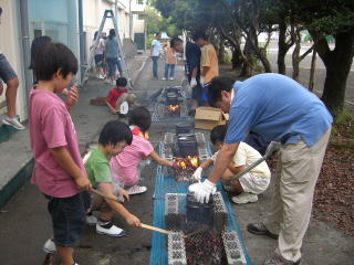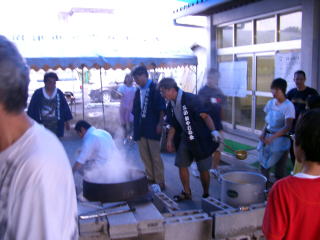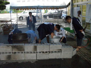 雷をともなう、ひどい夕立があったため、釜戸の設置場所を変更し、はんごうの数を減らし