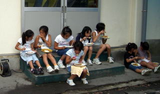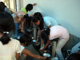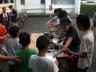 お母さんボランティアが野菜切り お米研ぎは、任せて!! 飯ごう炊飯は楽しいよ!!