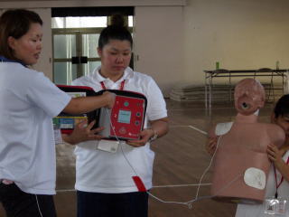 どのグループも真剣に指導員さんの話しに耳を傾け、緊張しながら、実際にやってみました。AEDを使えば、一般の人でも救える命があるということを知りました。使い方は、音声が教えてくれることもわかりました。