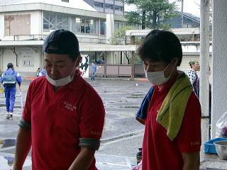 | 10月22日 (土)未明から天気予報通りの雨・・・先週の土曜日も雨・・・2週連続雨だなんて・・・ でも今日は、開北小バザーの日! 雨仕様の配置で、体育館2Fで本格射的 を、1F児童玄関で揚げたて唐揚げ・ハムかつ・イカリングの